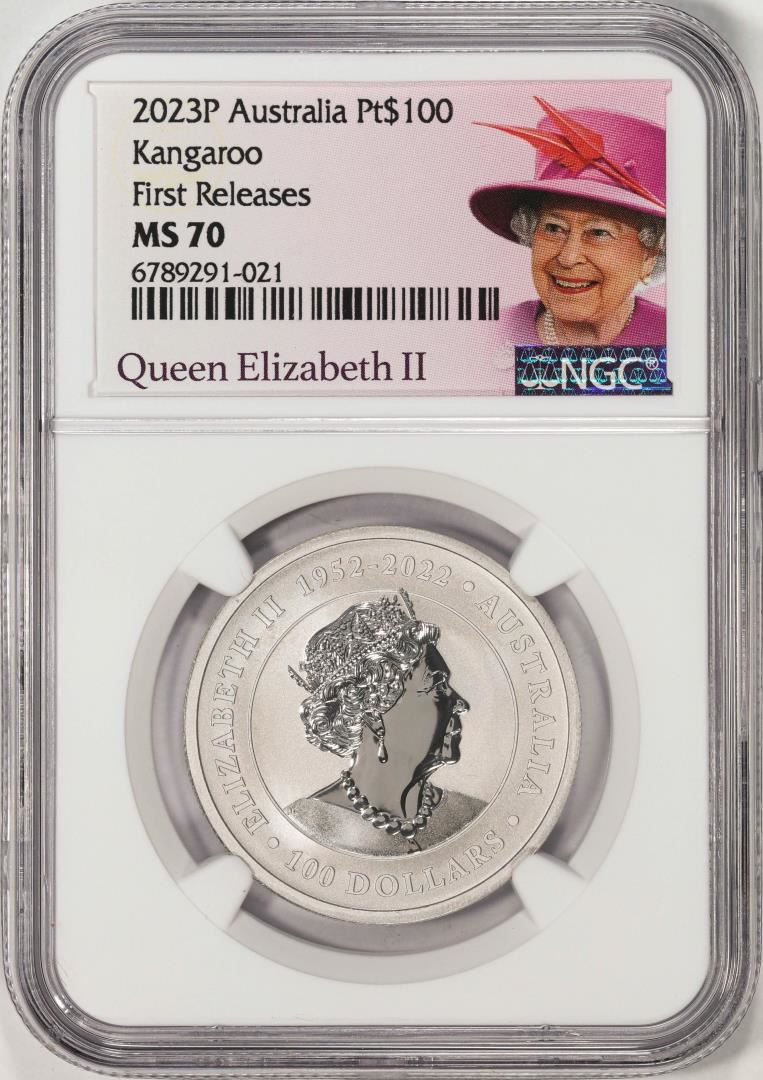 One 2023P Australia $100 Kangaroo 1oz Platinum Coin NGC MS70 First Releases. NGC Certified.
