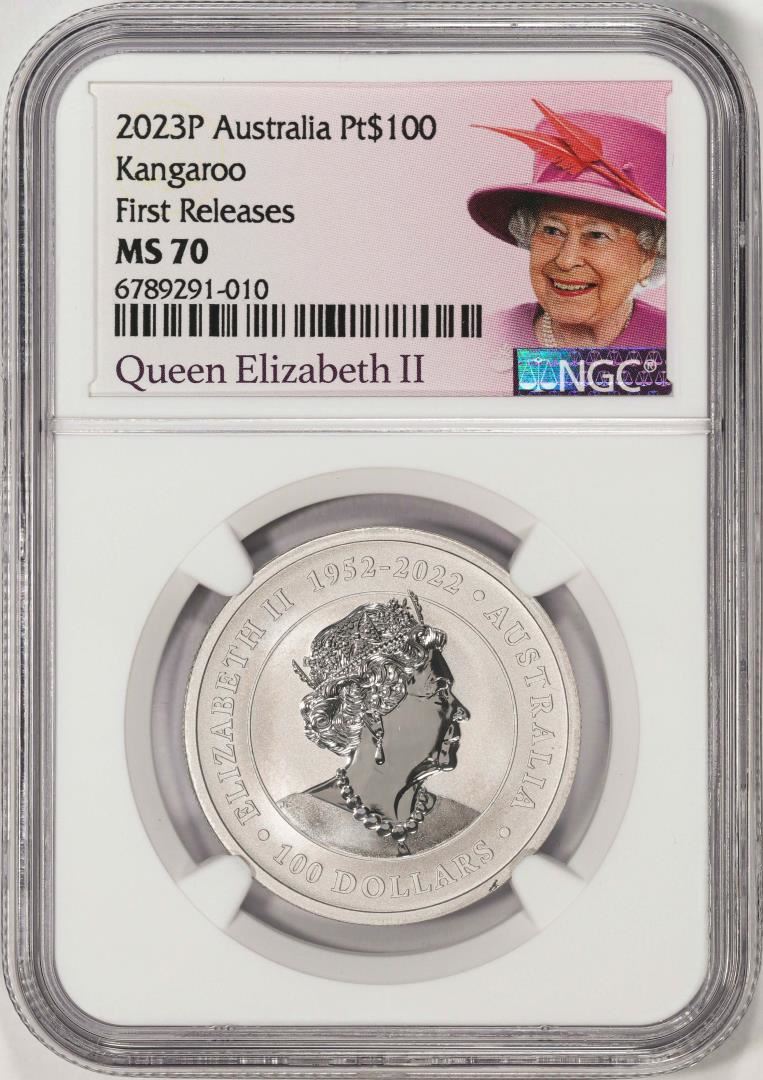 One 2023P Australia $100 Kangaroo 1oz Platinum Coin NGC MS70 First Releases. NGC Certified.
