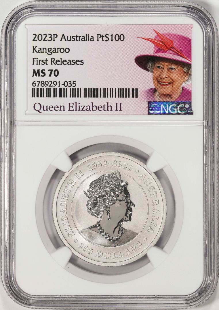 One 2023P Australia $100 Kangaroo 1oz Platinum Coin NGC MS70 First Releases. NGC Certified.