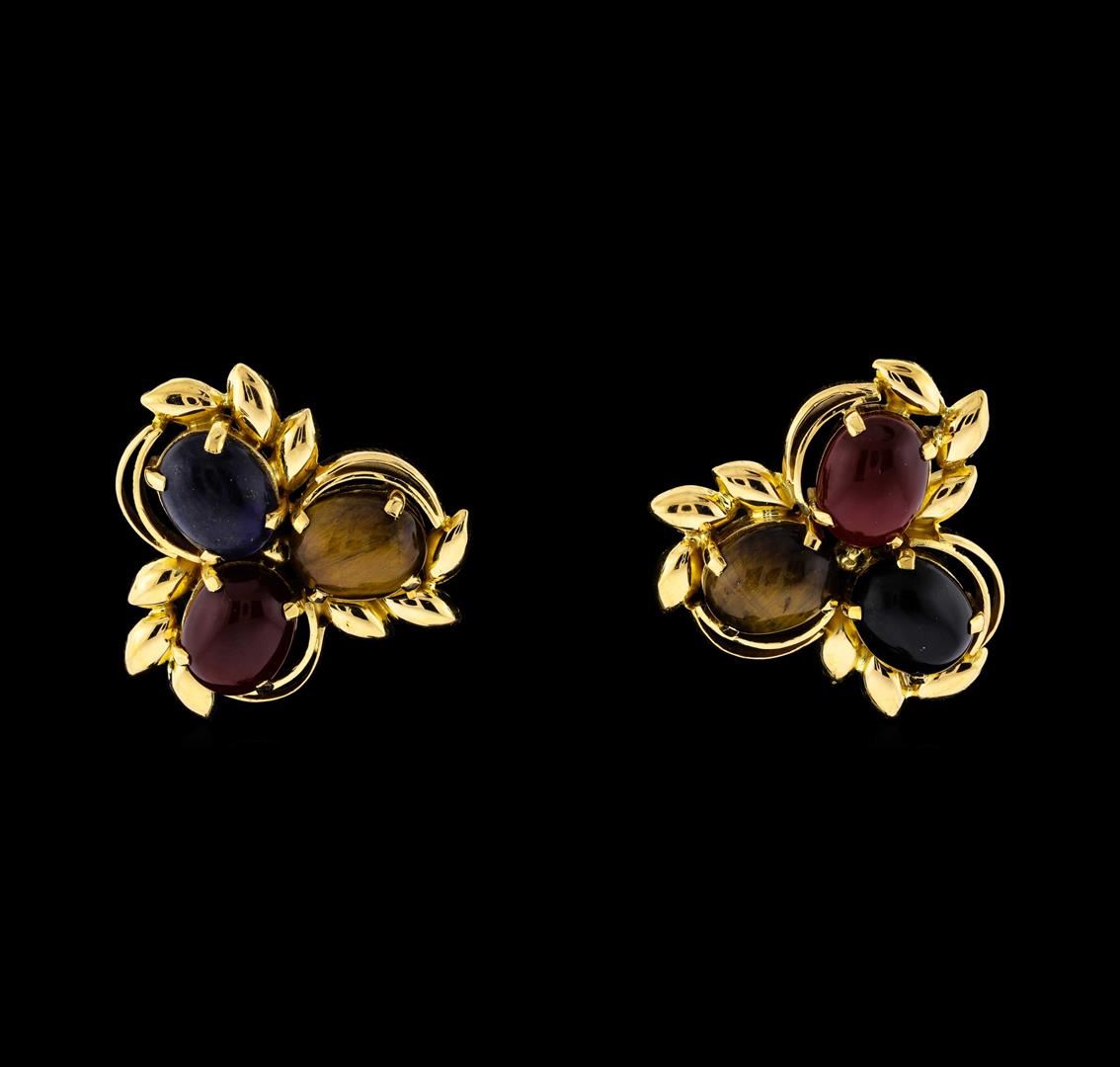 22KT Yellow Gold 12.27ctw Cabochon Tigers Eyes and Black Onyx Earrings