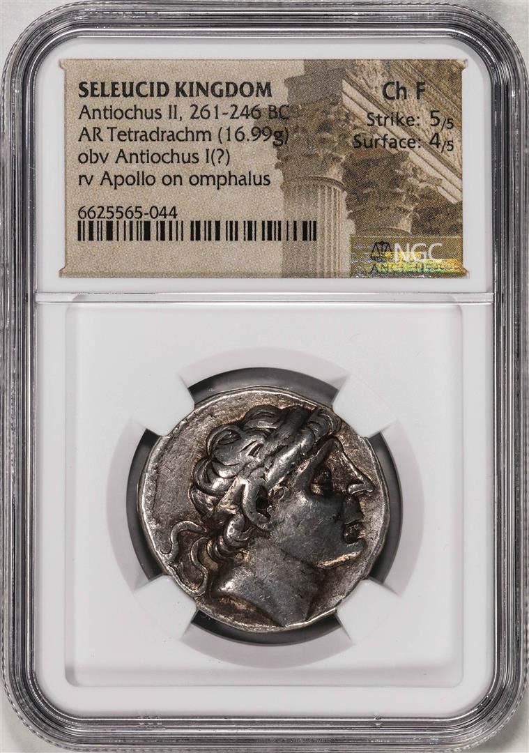One 261-246 BC Seleucid Kingdom Antiochus II AR Tetradrachm Ancient Coin NGC Ch F. NGC Certified.