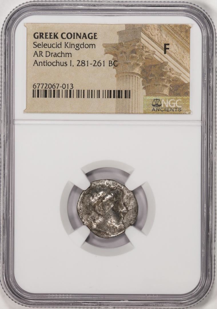 One 281-261 BC Seleucid Kingdom Antiochus I AR Drachm Ancient Greek Coin NGC F. NGC Certified.