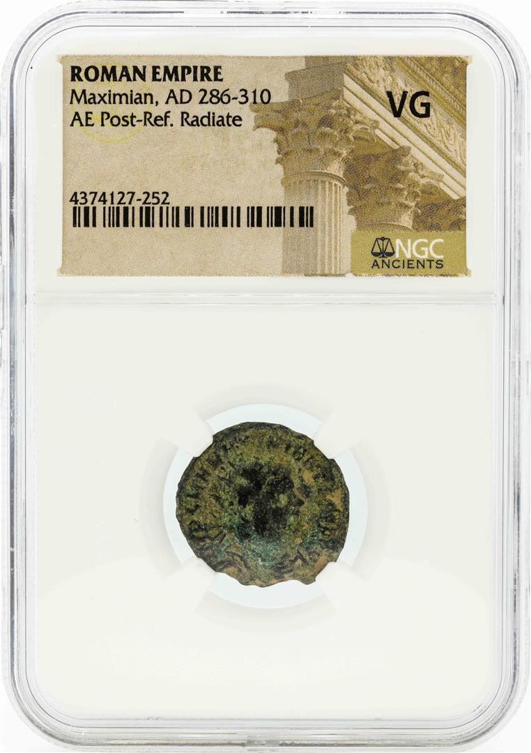 One 286-310 AD Ancient Roman Empire Coin Maximan NGC VG. NGC Certified.