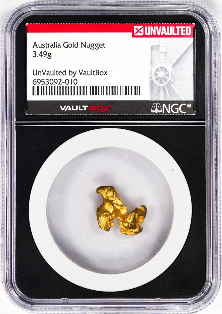 One 3.49 Gram Australia Gold Nugget NGC Vaultbox Unvaulted. NGC Certified.