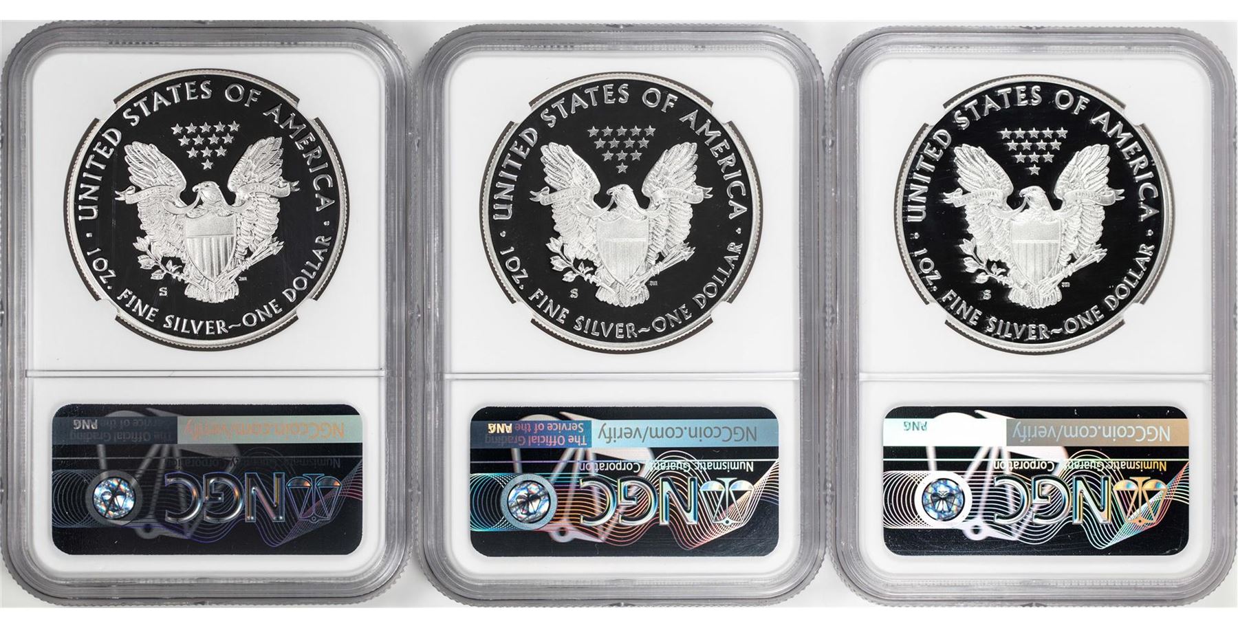 One (3) Coin 2018-S $1 Proof Silver Eagle Location Set NGC PF70 Ultra Cameo First Day Castle. NGC Certified.