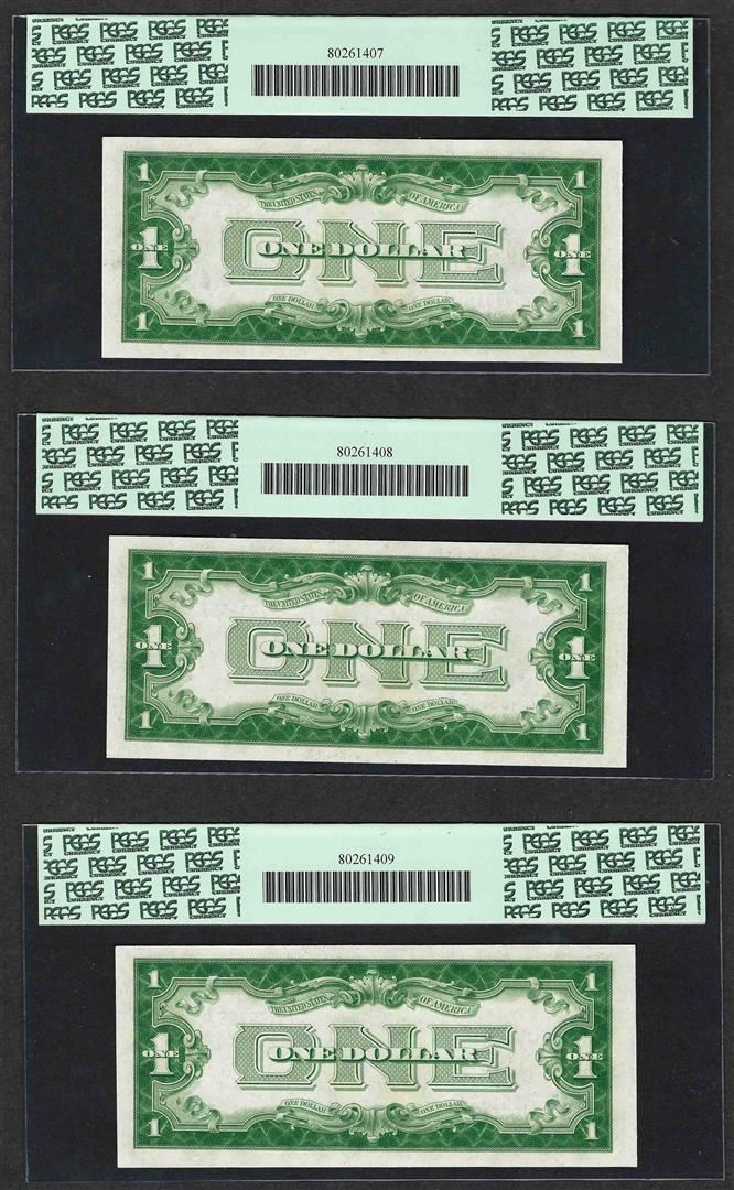(3) Consecutive 1928A $1 Funnyback Silver Certificate Notes Fr.1601 PCGS Gem New