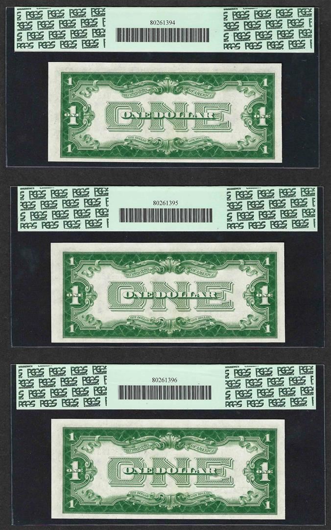 (3) Consecutive 1928A $1 Funnyback Silver Certificate Notes PCGS Very Choice New 64PPQ