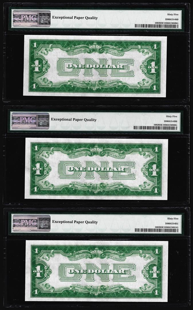 (3) Consecutive 1928B $1 Silver Certificate Notes Fr.1602 PMG Gem Uncirculated 65EPQ