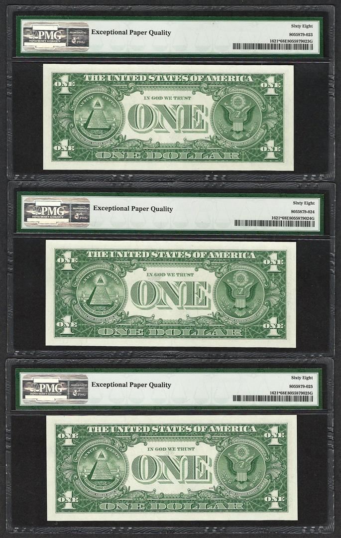 One (3) Consecutive 1957B $1 Silver Certificate STAR Notes PMG Superb Gem Unc. 68PPQ. PMG Certified.