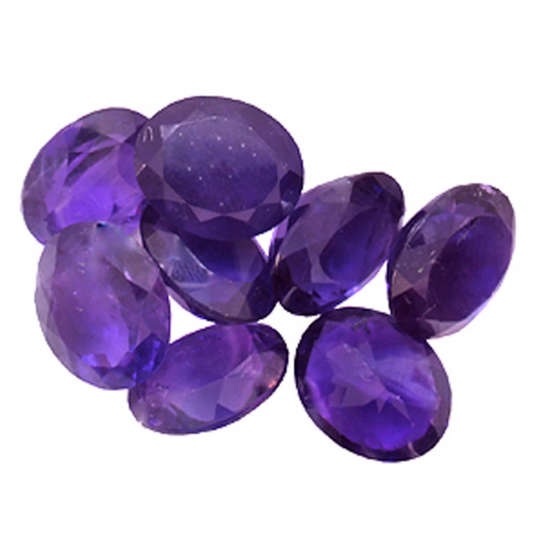 Eight oval mixed cut natural amethysts exact total weight 35.49ct., clarity is slightly included, type II, dark, very slightly grayish, purple color, (GIA P 7/3), cut is good. UGS Appraised.