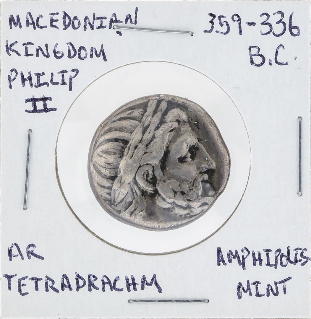 One 359-336 BC Macedonian Kingdom Philip II AR Tetradrachm Amphipolis Coin.