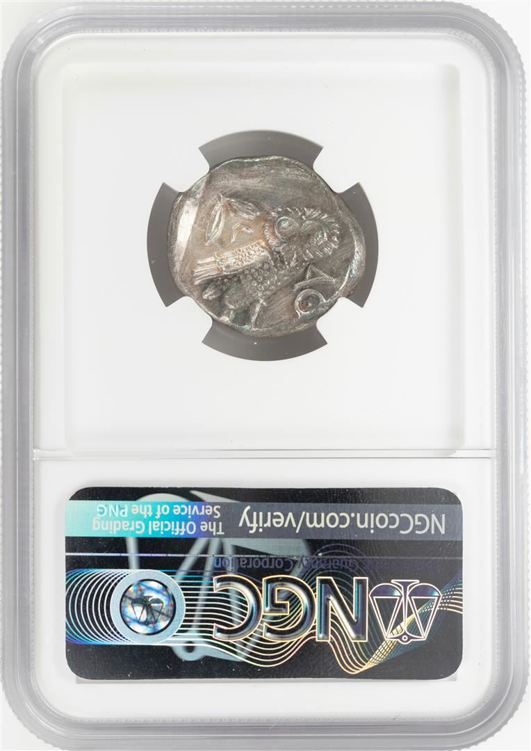 One 393-294 BC Attica Athens AR Tetradrachm Athena Owl Coin NGC CH VF. NGC Certified.