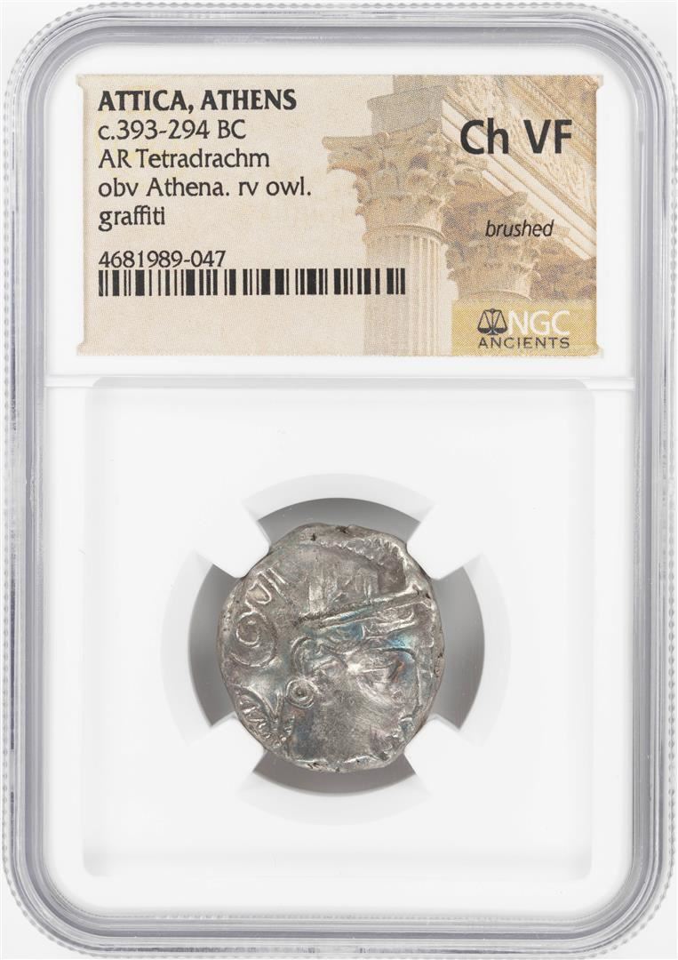 One 393-294 BC Attica Athens AR Tetradrachm Athena Owl Coin NGC Choice VF. NGC Certified.