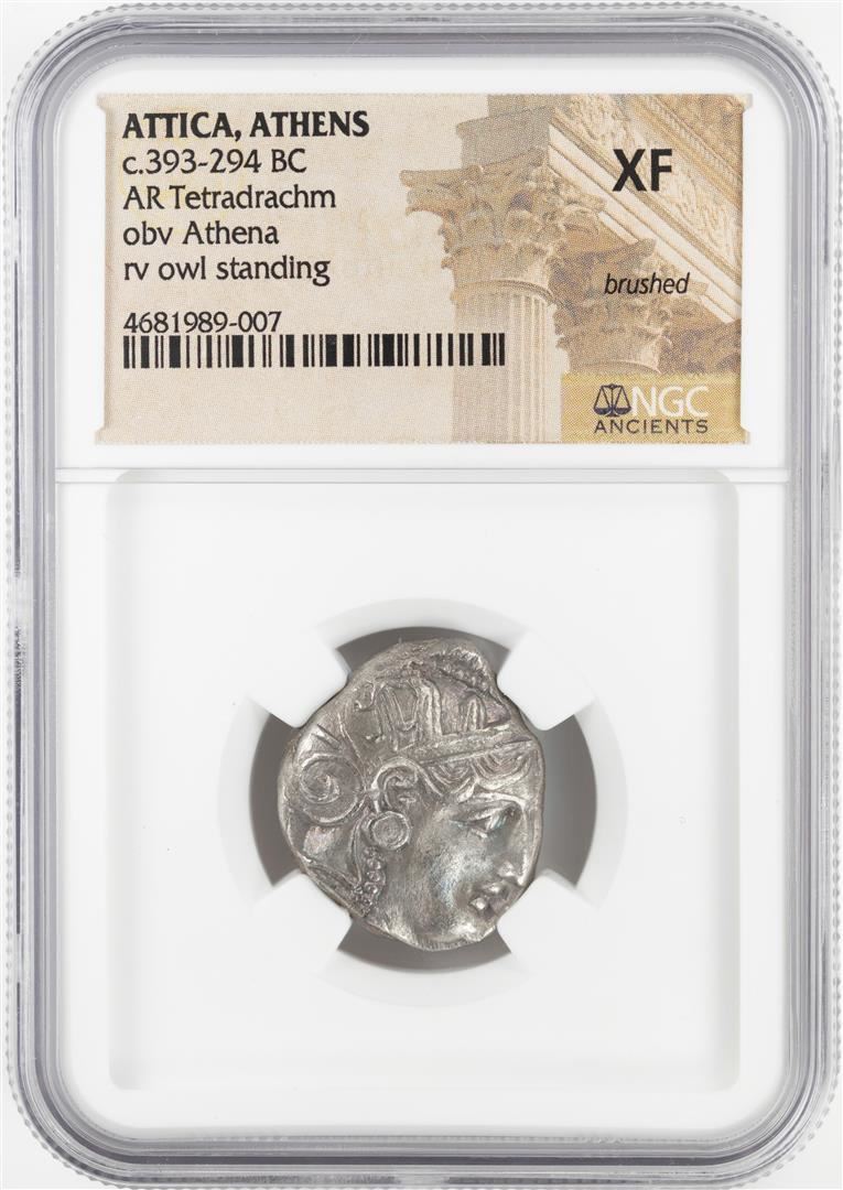 One 393-294 BC Attica Athens AR Tetradrachm Athena Owl Coin NGC XF. NGC Certified.