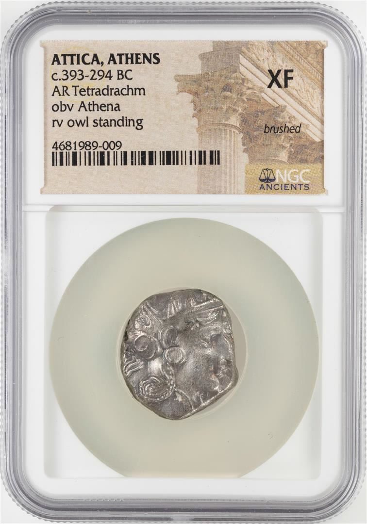 One 393-294 BC Attica Athens AR Tetradrachm Athena Owl Coin NGC XF. NGC Certified.
