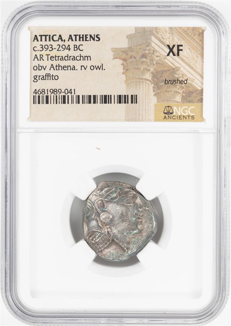 One 393-294 BC Attica Athens AR Tetradrachm Athena Owl Coin NGC XF. NGC Certified.