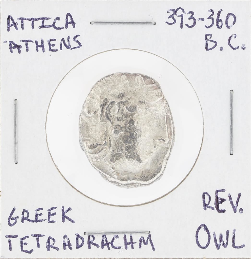 One 393-360 BC Attica Athens Greek Tetradrachm Owl Coin.