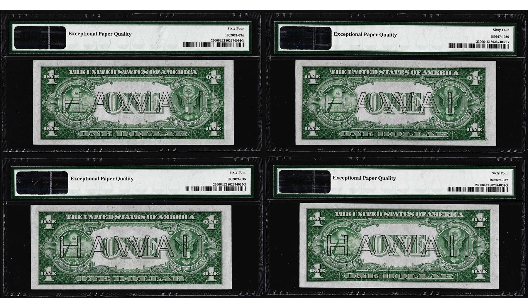One (4) Consec. 1935A $1 Hawaii WWII Emergency Silver Certificate Notes PMG Ch. Unc. 64EPQ. PMG Certified.