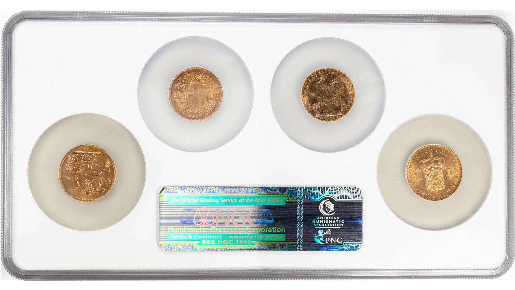 One Lot of (4) World Gold Coins '25 Britain '47 Swiss '14 France '32 Netherland NGC Uncirculated. NGC Certified.