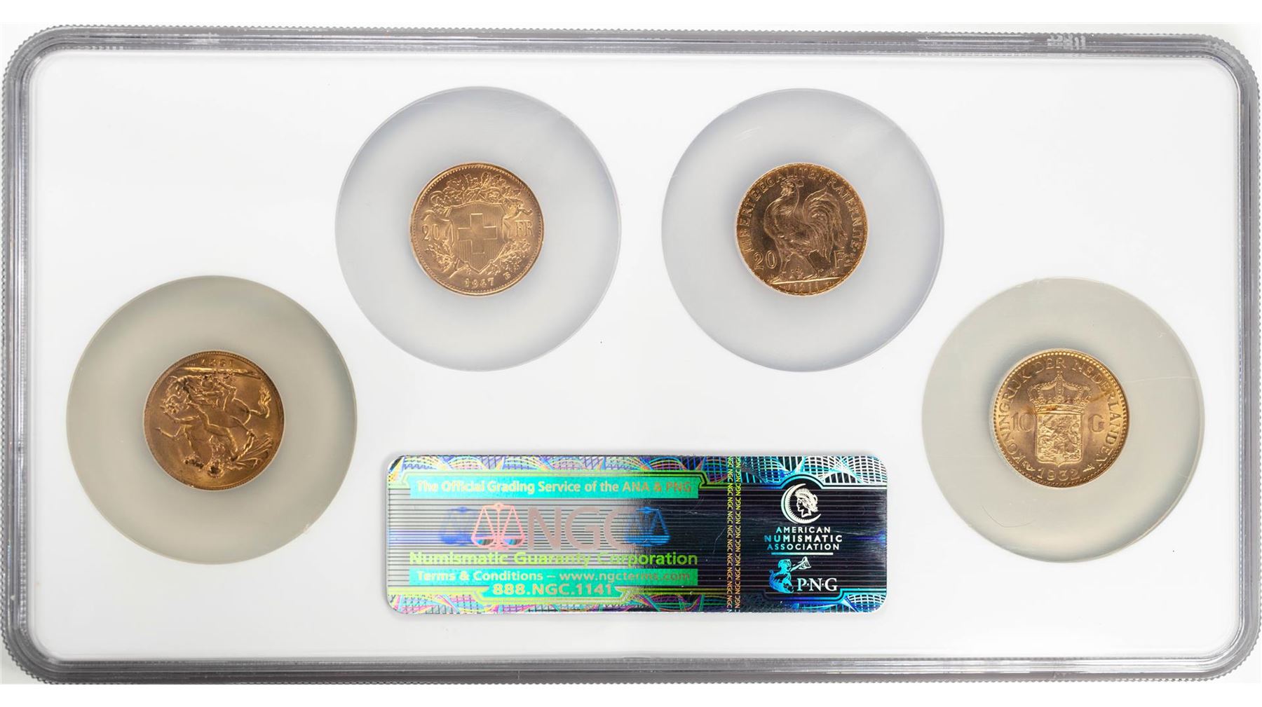 One Lot of (4) World Gold Coins '27 South Africa '47 Swiss '14 France '32 Netherland NGC Uncirculated. NGC Certified.