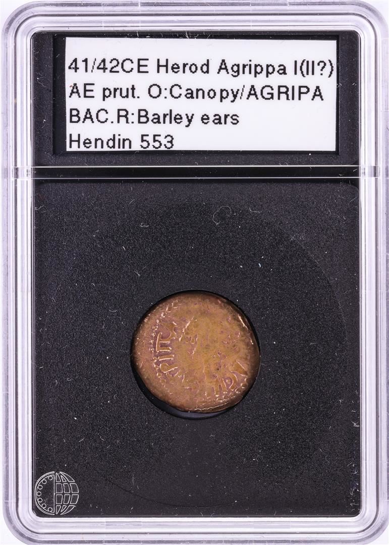 One 41-42 CE Herod the Great AE Prutah Ancient Coin.