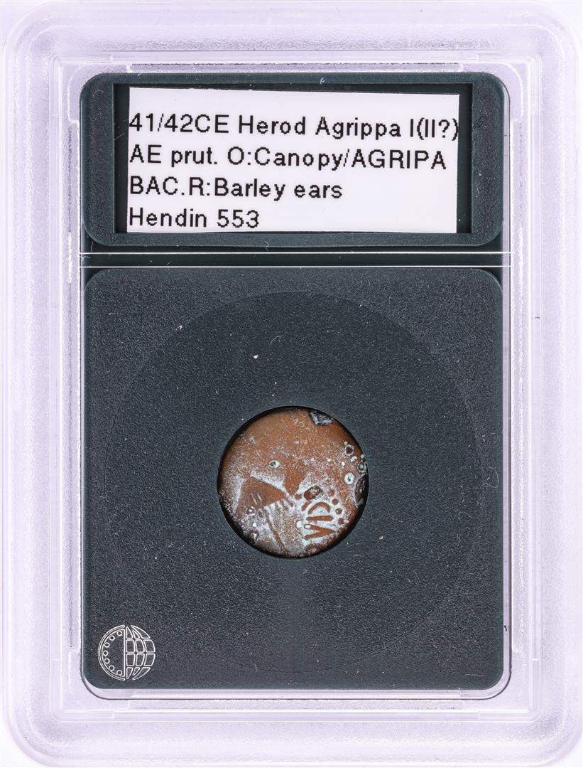 One 41/42CE Herod Agrippa AE Prutah Ancient Coin.