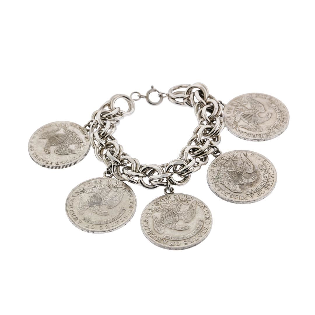 One (5) Coin Bust Half Dollar Coin Charm Bracelet.