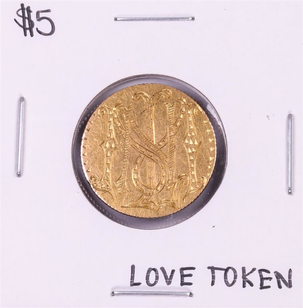 One $5 Liberty Head Half Eagle Love Token Coin Pin.