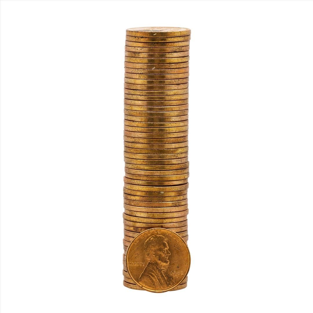 One (50) 1942-D Brilliant Uncirculated Lincoln Wheat Penny Roll.