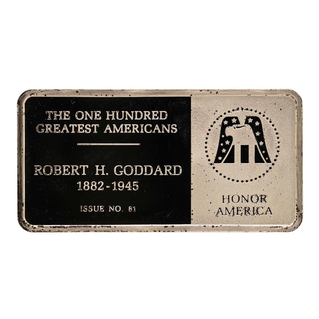 One 500 Grain Sterling Silver Franklin Mint 100 Greatest Americans Ingot.