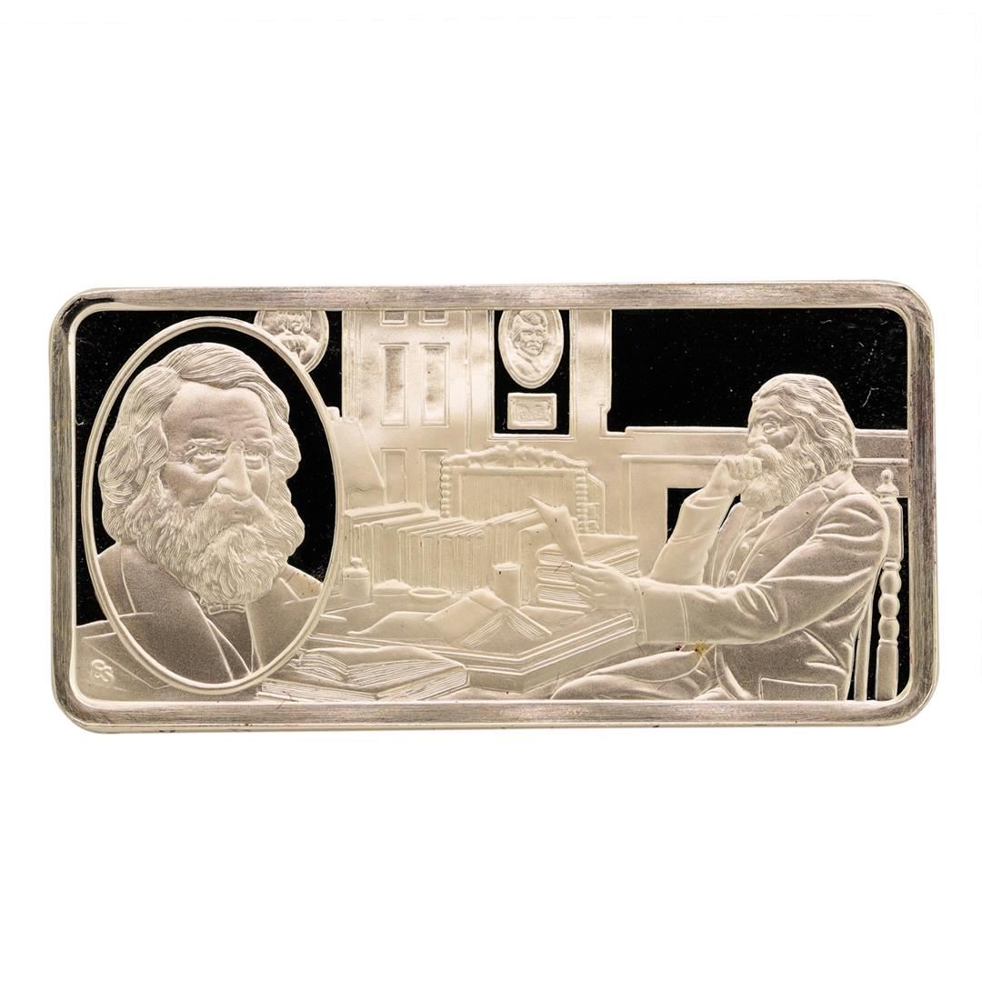 One 500 Grain Sterling Silver Franklin Mint 100 Greatest Americans Ingot.