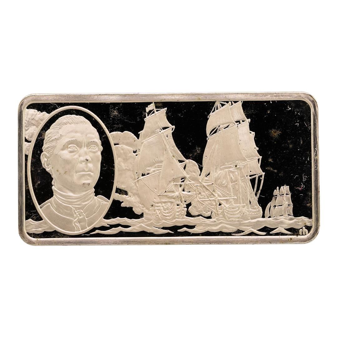 One 500 Grain Sterling Silver Franklin Mint 100 Greatest Americans Ingot.