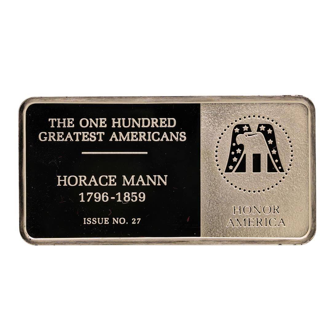 One 500 Grain Sterling Silver Franklin Mint 100 Greatest Americans Ingot.