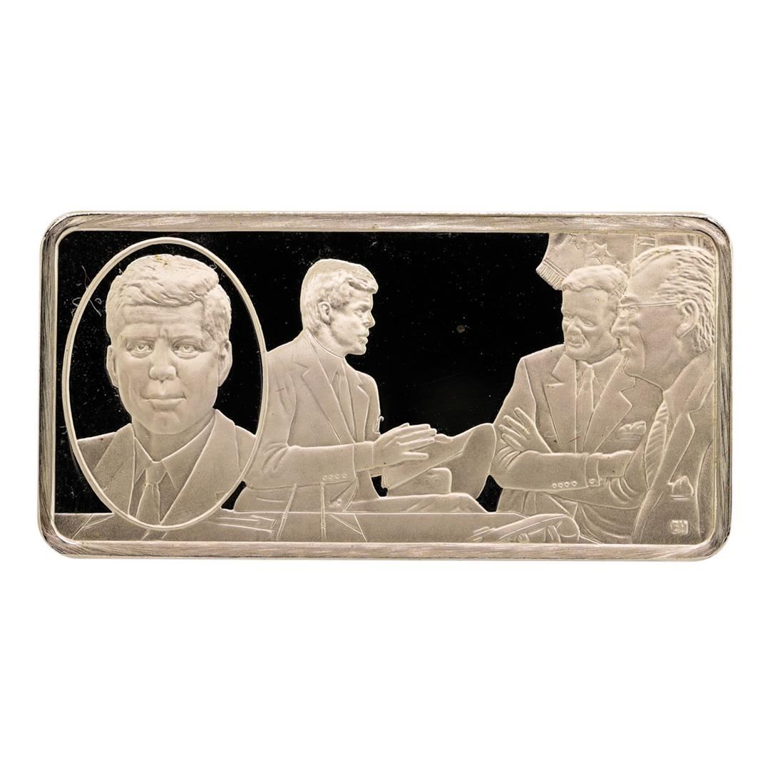 One 500 Grain Sterling Silver Franklin Mint 100 Greatest Americans Ingot.