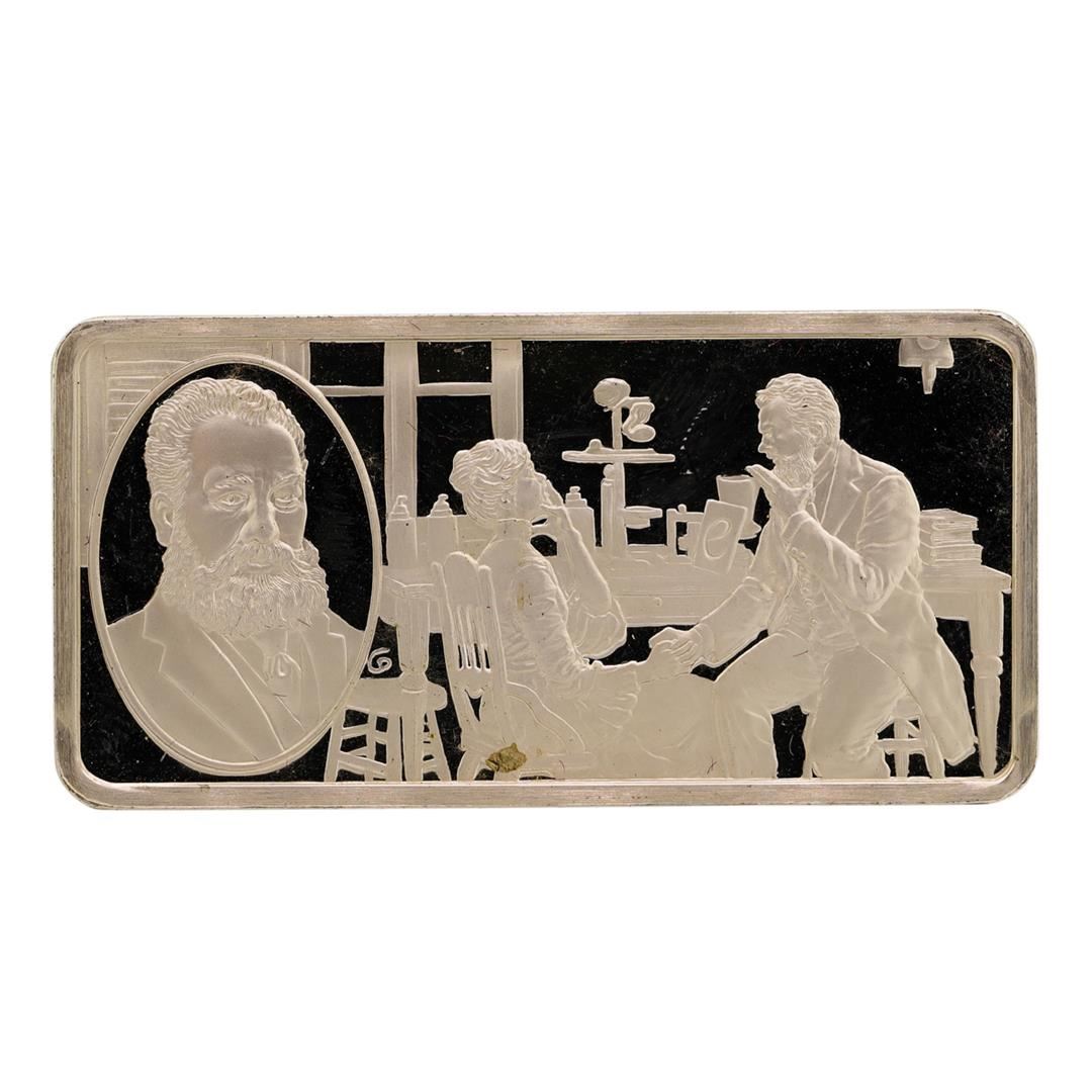 One 500 Grain Sterling Silver Franklin Mint 100 Greatest Americans Ingot.