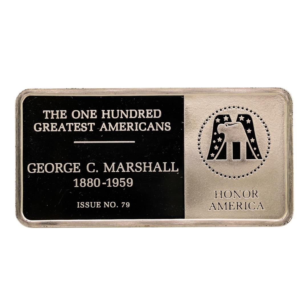 One 500 Grain Sterling Silver Franklin Mint 100 Greatest Americans Ingot.