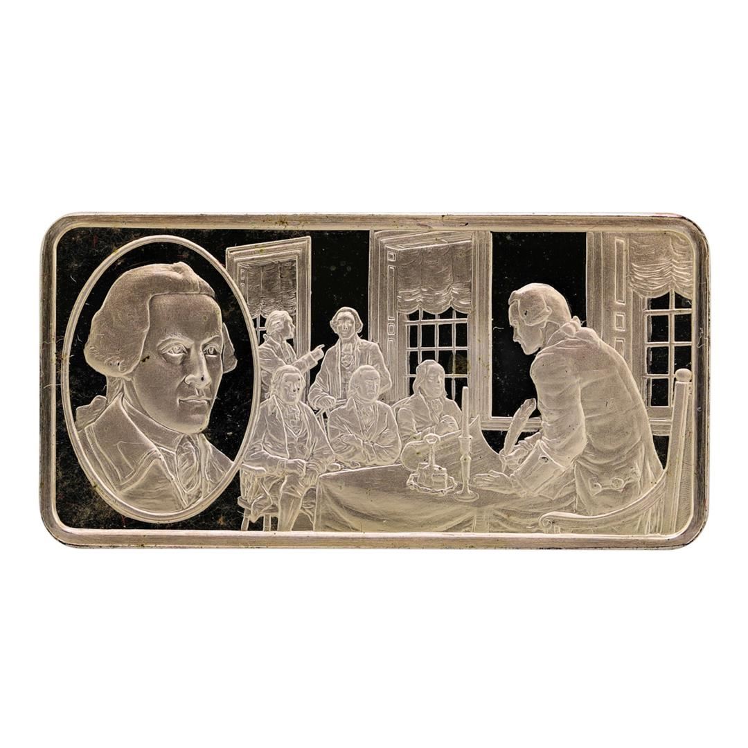 One 500 Grain Sterling Silver Franklin Mint 100 Greatest Americans Ingot.