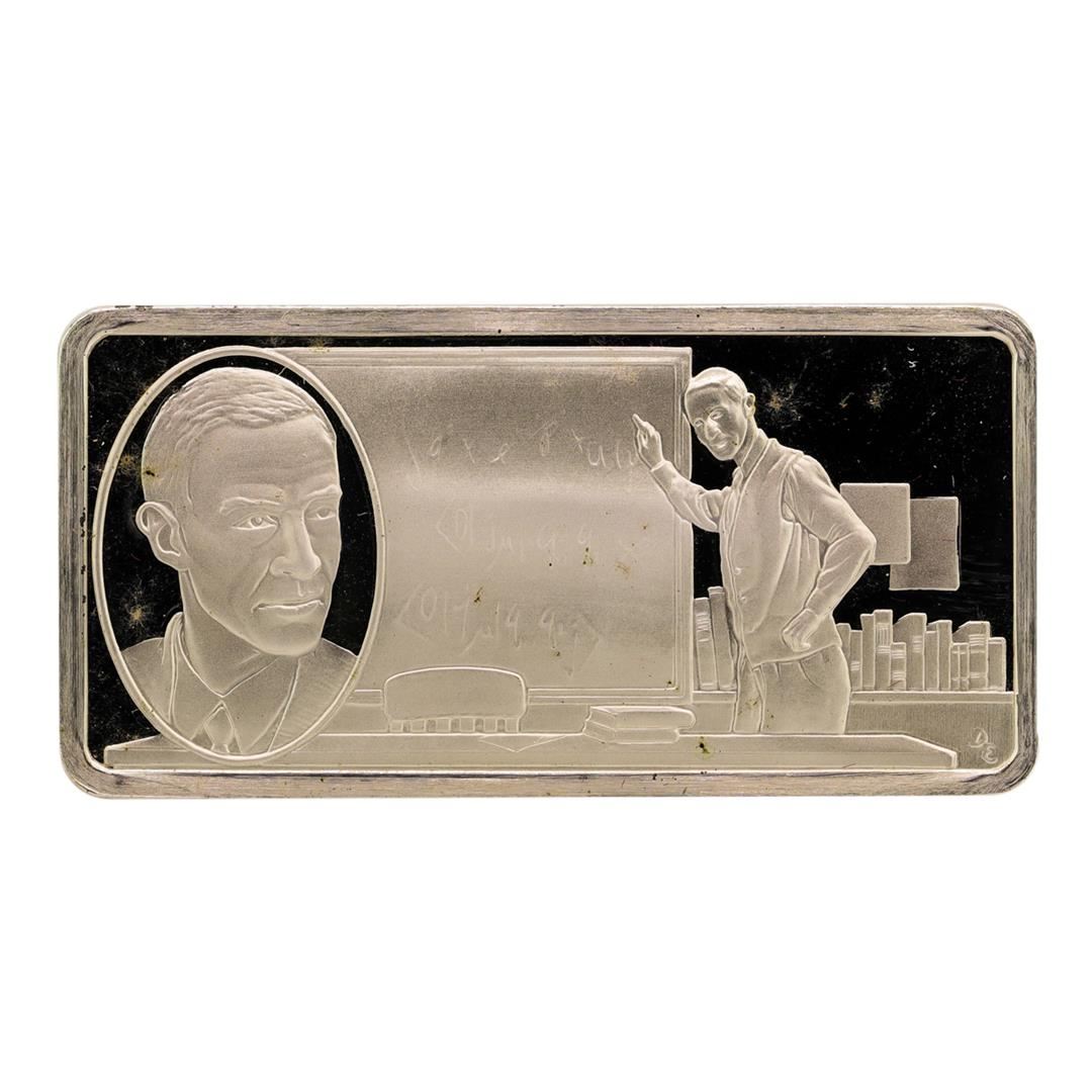 One 500 Grain Sterling Silver Franklin Mint 100 Greatest Americans Ingot.