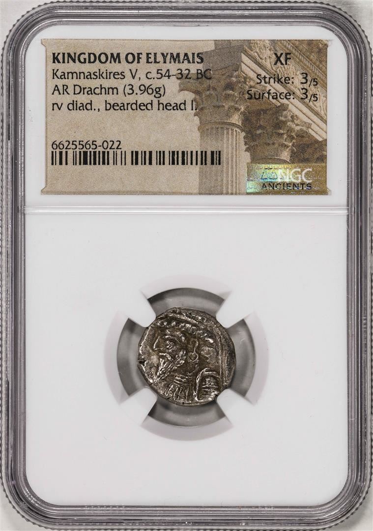 54-32 BC Kingdom of Elymais Kamnaskires AR Drachm Ancient Coin NGC XF