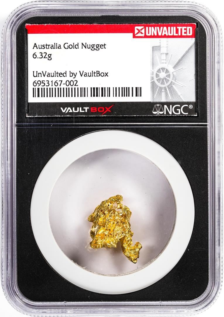 One 6.32 Gram Australia Gold Nugget NGC Vaultbox Unvaulted. NGC Certified.