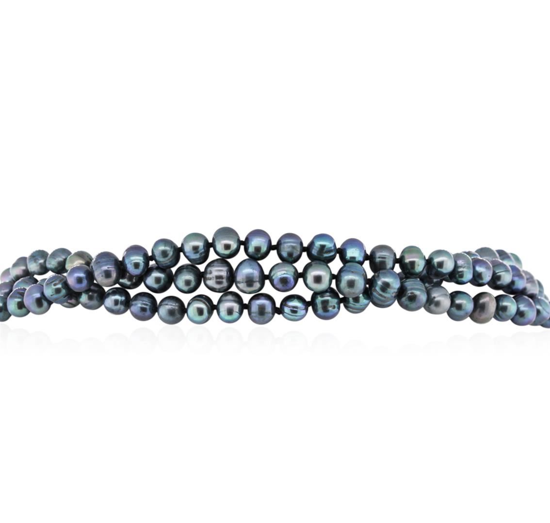 One dark coral pearl necklace approximately 60" long. The pearls measure approximately 6.5-7.5mm. Good condition.