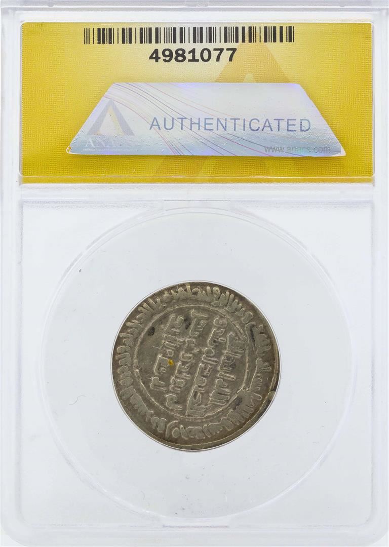 One 6-7th Century AD Dirhem Coin ANACS VF35. ANACS Certified.
