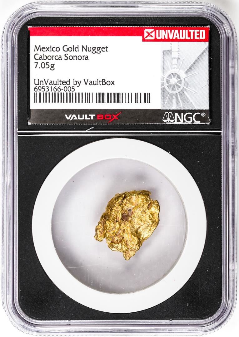 7.05 Gram Caborca Sonora Mexico Gold Nugget NGC Vaultbox Unvaulted