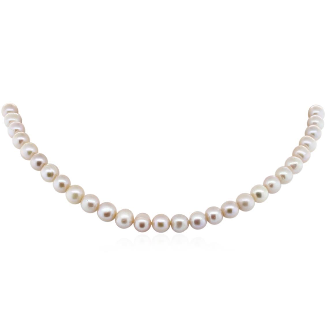 One cultured pearl loose strand/string necklace. The necklace contains approximately 51 beautiful cultured pearls measuring approximately 7-8.25mm and is in good condition.