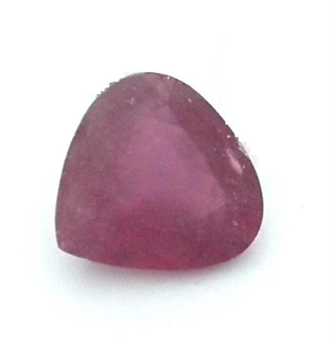 One pear mixed cut natural ruby, measuring 13.00 x 13.10 x 6.00mm, exact weight 8.08ct., clarity is heavily included, type II, dark, very slightly brownish, red color, (GIA R 7/3), cut is good. Transmitting light somewhat diffusely, transparent to translucent. Naturally occurring internal & external characteristics are present. Indications of laboratory high temperature heat treatment, with glass & flux additives. Ruby has a low tolerance to rhodium plating, repolishing the surface, & ultrasonic cleaning. UGS Appraised.
