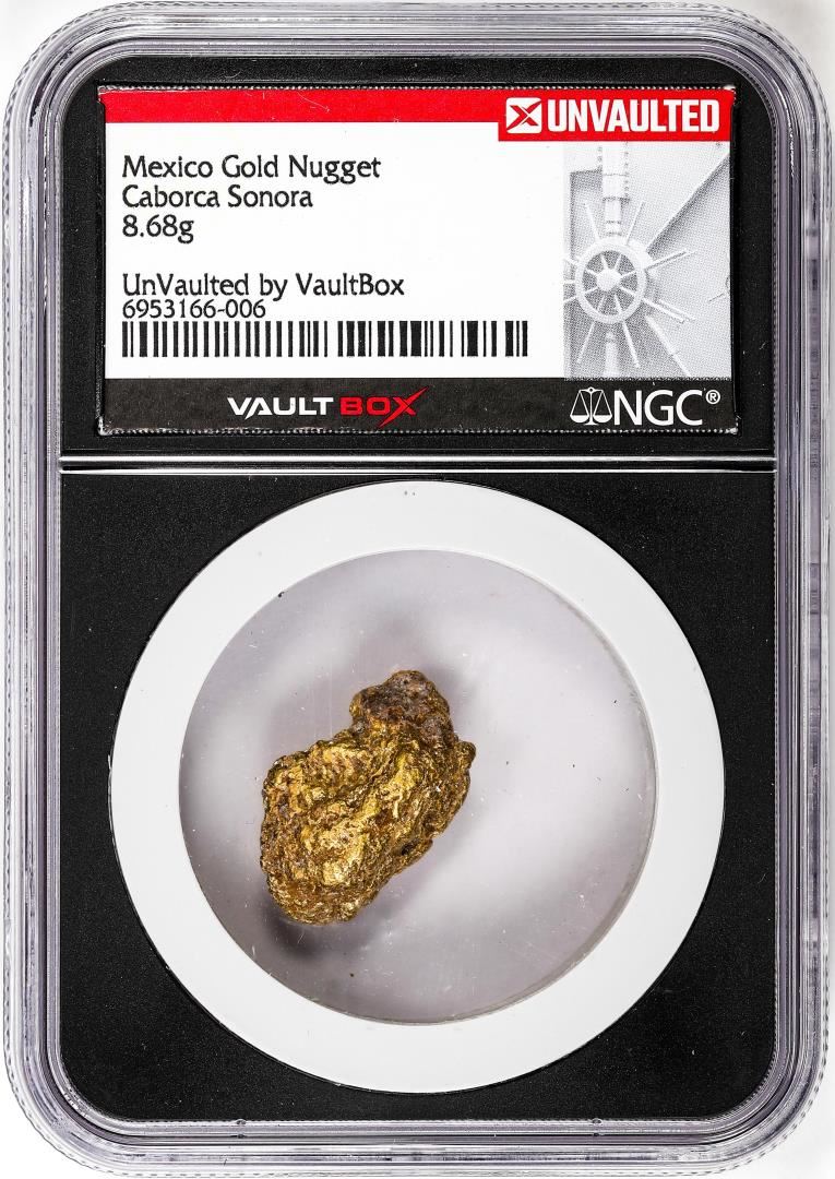 One 8.68 Gram Caborca Sonora Mexico Gold Nugget NGC Vaultbox Unvaulted. NGC Certified.
