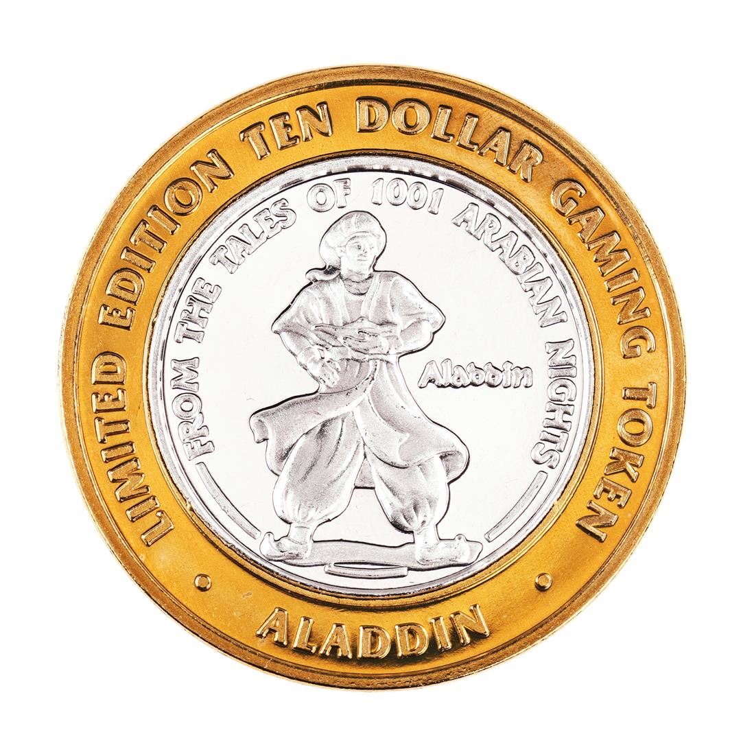 One .999 Fine Silver Aladdin Resort & Casino Las Vegas $10 Limited Edition Gaming Token.
