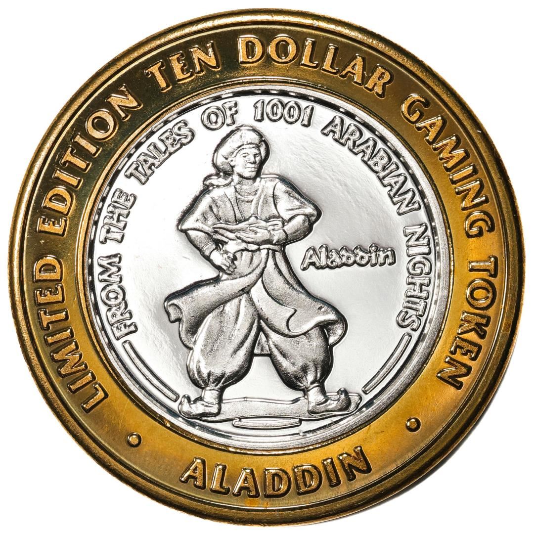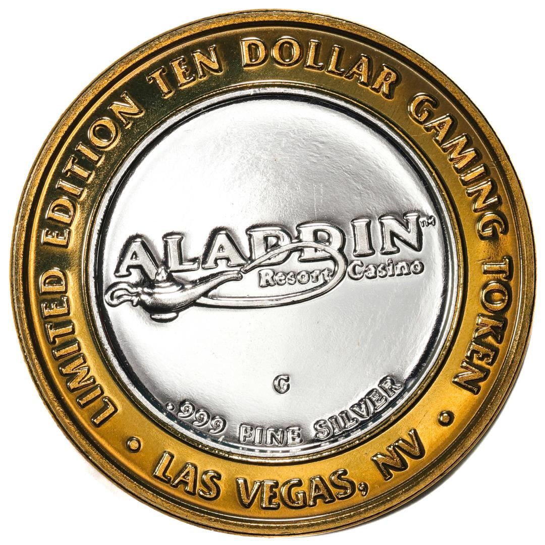 One .999 Fine Silver Aladdin Resort & Casino Las Vegas $10 Limited Edition Gaming Token.
