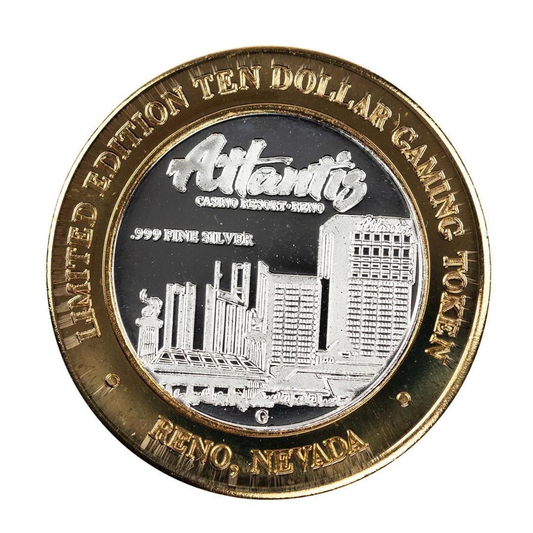 One .999 Fine Silver Atlantis Casino & Resort Reno, NV $10 Limited Edition Gaming Token.