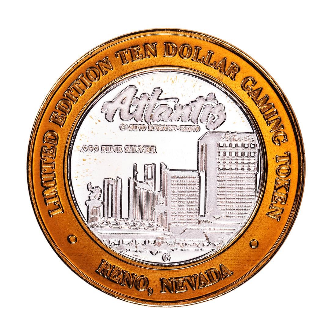 One .999 Fine Silver Atlantis Casino & Resort Reno, NV $10 Limited Edition Gaming Token.